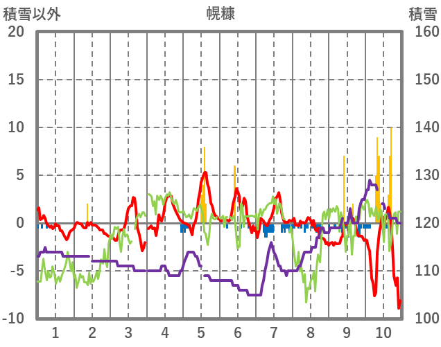 | 日 | 時 | 気温 | 降水 | 風向/風速 | 日照 | 積雪 | 降雪 |