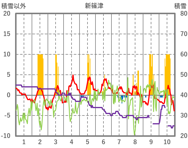 | 日 | 時 | 気温 | 降水 | 風向/風速 | 日照 | 積雪 | 降雪 |