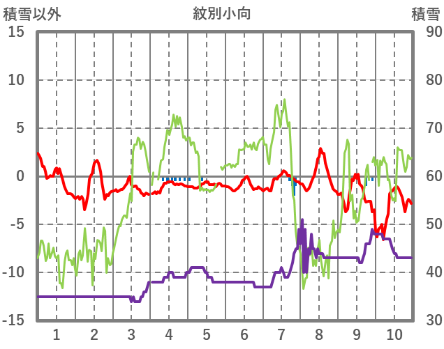 | 日 | 時 | 気温 | 降水 | 風向/風速 | 日照 | 積雪 | 降雪 |
