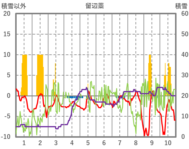 | 日 | 時 | 気温 | 降水 | 風向/風速 | 日照 | 積雪 | 降雪 |