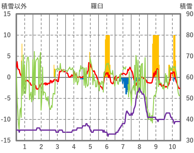 | 日 | 時 | 気温 | 降水 | 風向/風速 | 日照 | 積雪 | 降雪 |