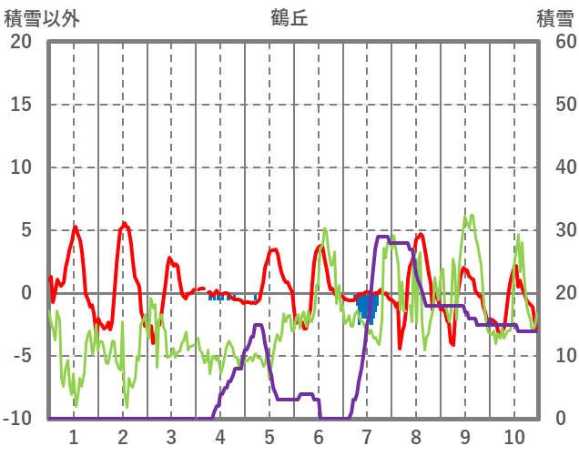| 日 | 時 | 気温 | 降水 | 風向/風速 | 日照 | 積雪 | 降雪 |