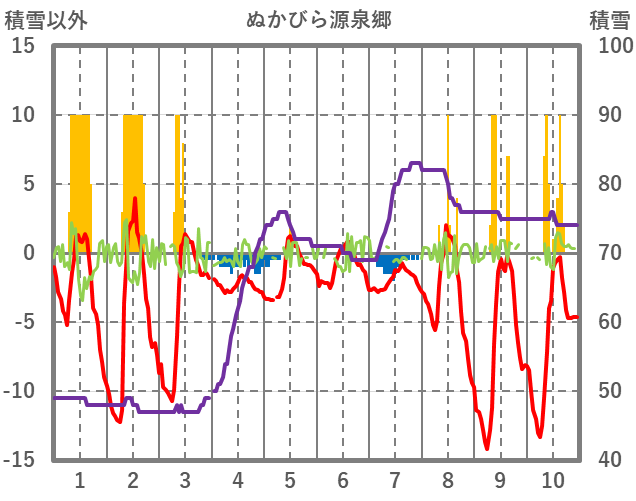 | 日 | 時 | 気温 | 降水 | 風向/風速 | 日照 | 積雪 | 降雪 |