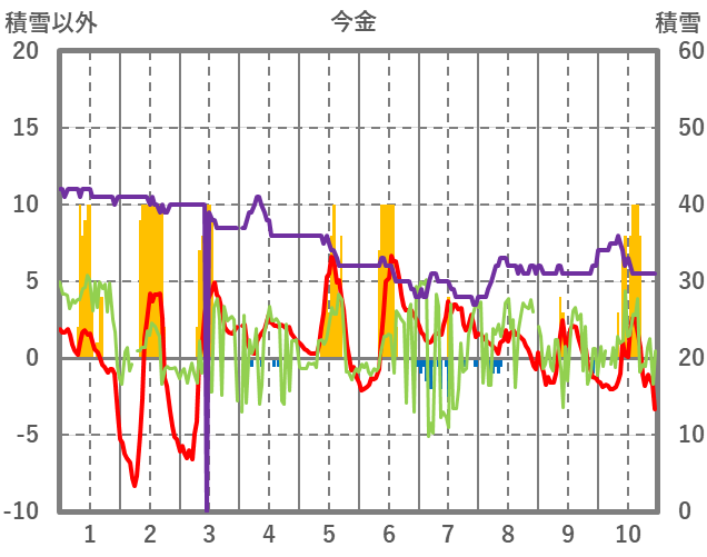 | 日 | 時 | 気温 | 降水 | 風向/風速 | 日照 | 積雪 | 降雪 |