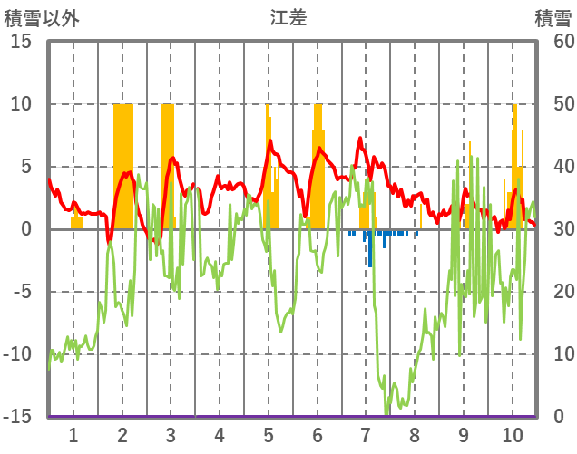 | 日 | 時 | 気温 | 降水 | 風向/風速 | 日照 | 積雪 | 降雪 |