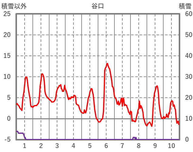 | 日 | 時 | 気温 | 降水 | 風向/風速 | 日照 | 積雪 | 降雪 |