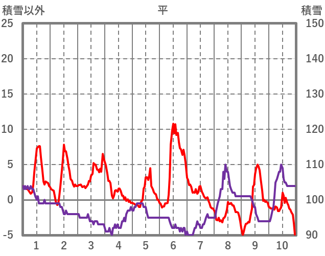 | 日 | 時 | 気温 | 降水 | 風向/風速 | 日照 | 積雪 | 降雪 |