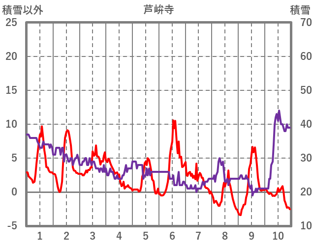 | 日 | 時 | 気温 | 降水 | 風向/風速 | 日照 | 積雪 | 降雪 |
