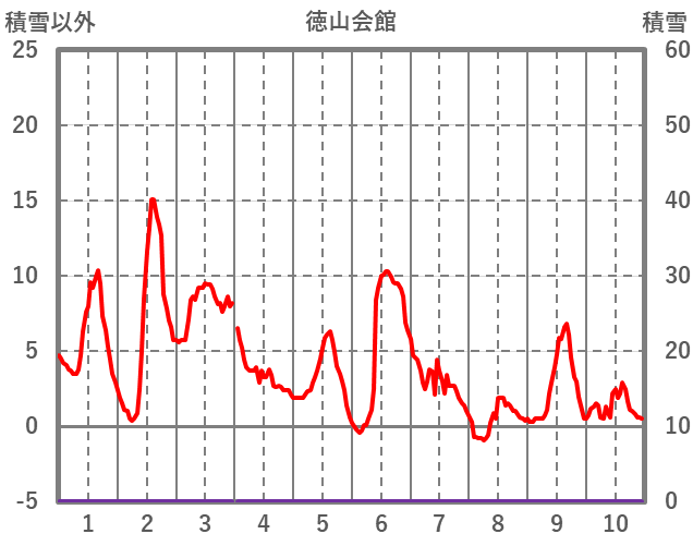 | 日 | 時 | 気温 | 降水 | 風向/風速 | 日照 | 積雪 | 降雪 |