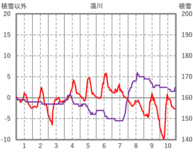 | 日 | 時 | 気温 | 降水 | 風向/風速 | 日照 | 積雪 | 降雪 |