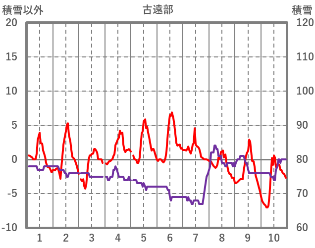 | 日 | 時 | 気温 | 降水 | 風向/風速 | 日照 | 積雪 | 降雪 |