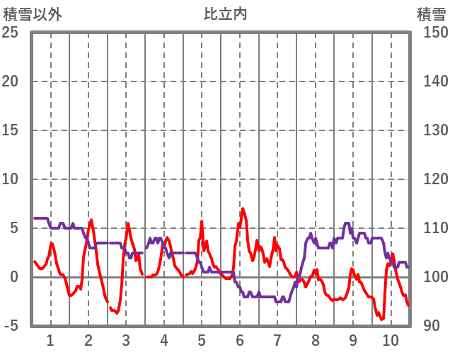 | 日 | 時 | 気温 | 降水 | 風向/風速 | 日照 | 積雪 | 降雪 |