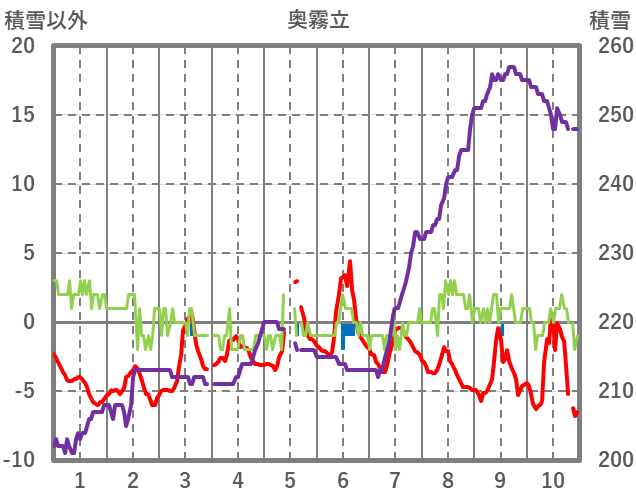 | 日 | 時 | 気温 | 降水 | 風向/風速 | 日照 | 積雪 | 降雪 |