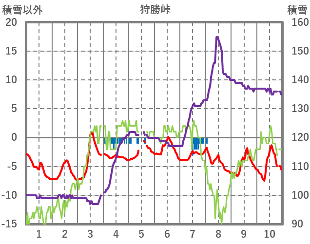 | 日 | 時 | 気温 | 降水 | 風向/風速 | 日照 | 積雪 | 降雪 |