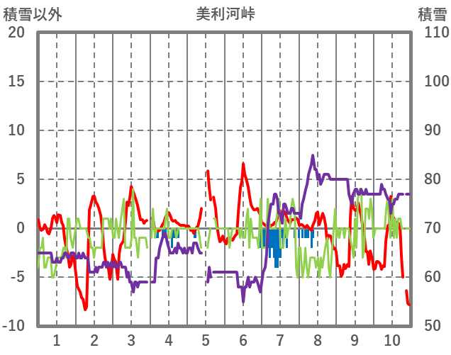 | 日 | 時 | 気温 | 降水 | 風向/風速 | 日照 | 積雪 | 降雪 |