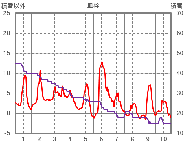 | 日 | 時 | 気温 | 降水 | 風向/風速 | 日照 | 積雪 | 降雪 |