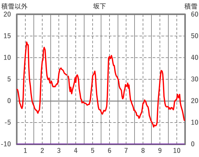 | 日 | 時 | 気温 | 降水 | 風向/風速 | 日照 | 積雪 | 降雪 |