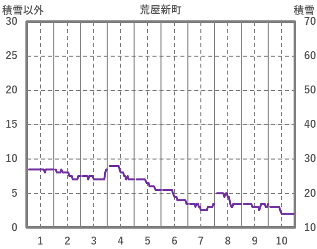 | 日 | 時 | 気温 | 降水 | 風向/風速 | 日照 | 積雪 | 降雪 |