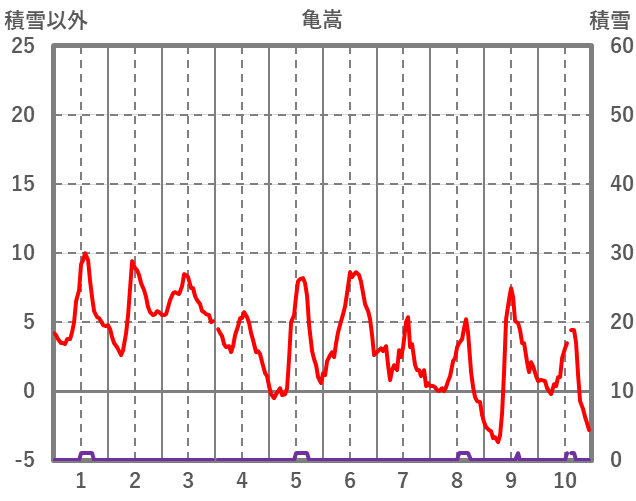| 日 | 時 | 気温 | 降水 | 風向/風速 | 日照 | 積雪 | 降雪 |