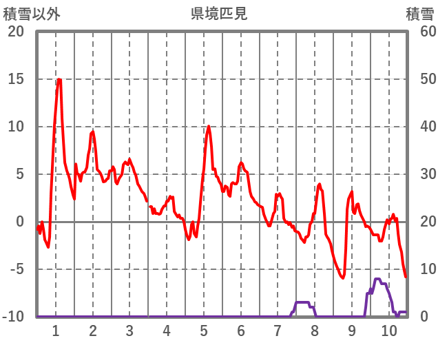 | 日 | 時 | 気温 | 降水 | 風向/風速 | 日照 | 積雪 | 降雪 |
