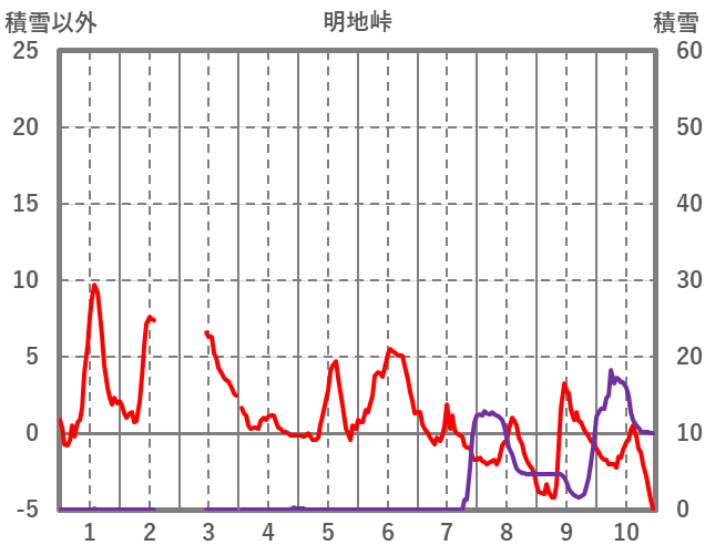 | 日 | 時 | 気温 | 降水 | 風向/風速 | 日照 | 積雪 | 降雪 |