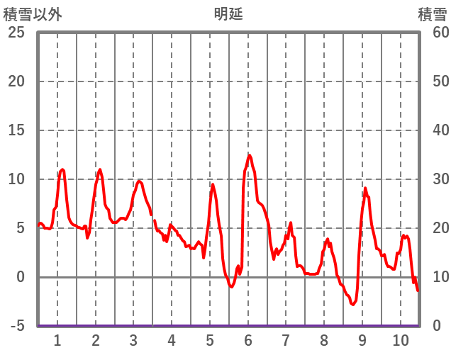 | 日 | 時 | 気温 | 降水 | 風向/風速 | 日照 | 積雪 | 降雪 |