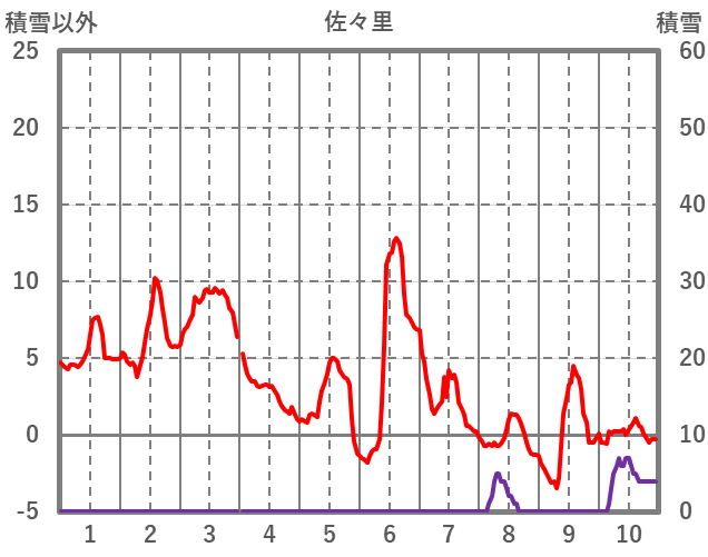 | 日 | 時 | 気温 | 降水 | 風向/風速 | 日照 | 積雪 | 降雪 |