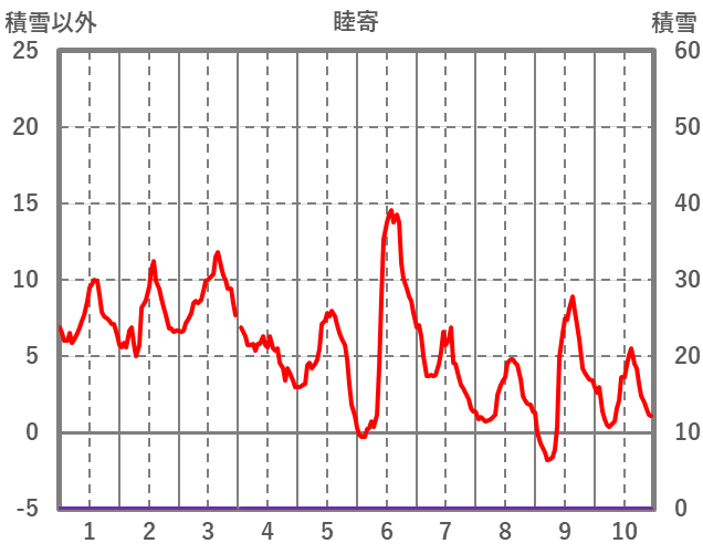 | 日 | 時 | 気温 | 降水 | 風向/風速 | 日照 | 積雪 | 降雪 |