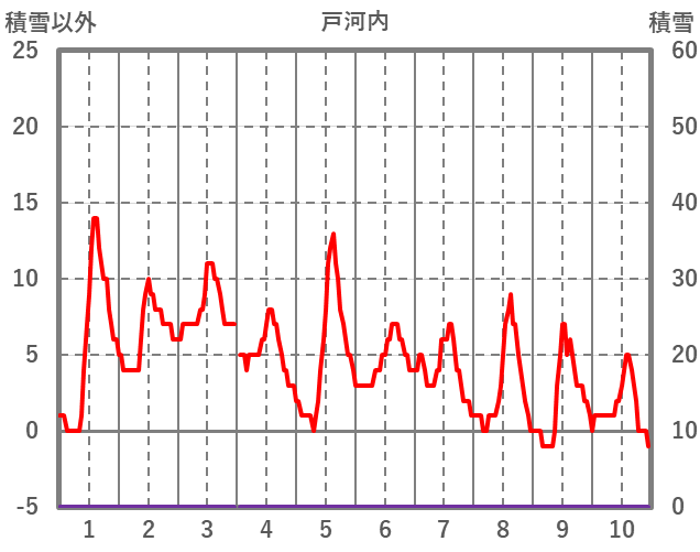 | 日 | 時 | 気温 | 降水 | 風向/風速 | 日照 | 積雪 | 降雪 |