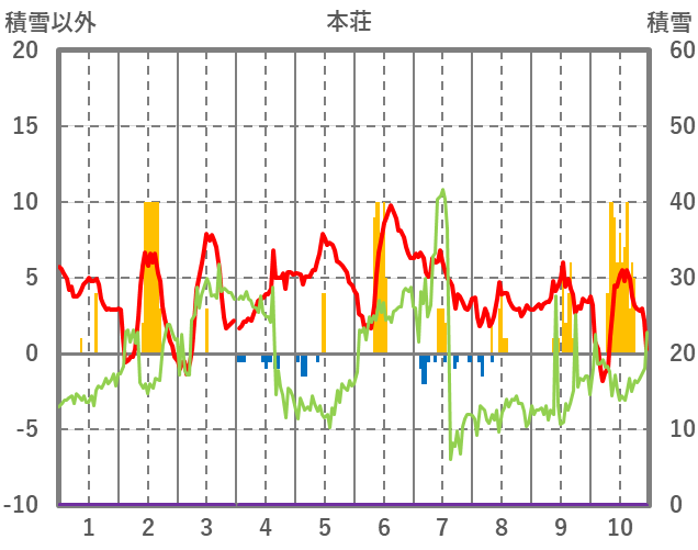 | 日 | 時 | 気温 | 降水 | 風向/風速 | 日照 | 積雪 | 降雪 |