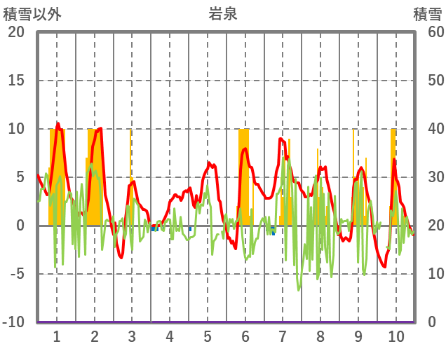 | 日 | 時 | 気温 | 降水 | 風向/風速 | 日照 | 積雪 | 降雪 |
