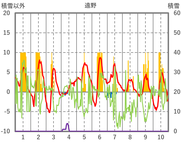 | 日 | 時 | 気温 | 降水 | 風向/風速 | 日照 | 積雪 | 降雪 |
