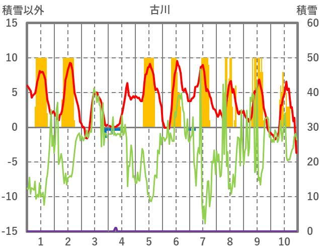 | 日 | 時 | 気温 | 降水 | 風向/風速 | 日照 | 積雪 | 降雪 |