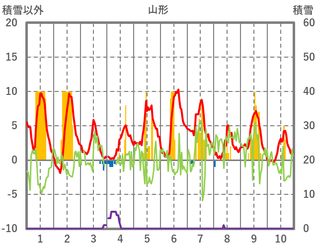 | 日 | 時 | 気温 | 降水 | 風向/風速 | 日照 | 積雪 | 降雪 |