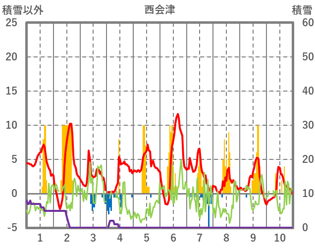 | 日 | 時 | 気温 | 降水 | 風向/風速 | 日照 | 積雪 | 降雪 |