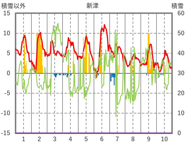 | 日 | 時 | 気温 | 降水 | 風向/風速 | 日照 | 積雪 | 降雪 |