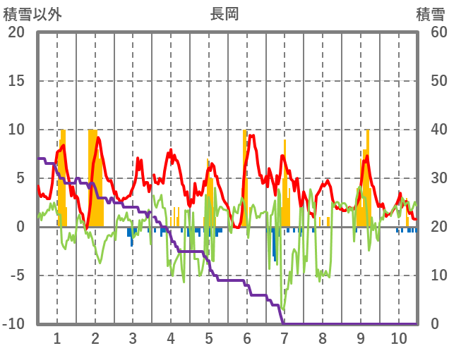 | 日 | 時 | 気温 | 降水 | 風向/風速 | 日照 | 積雪 | 降雪 |