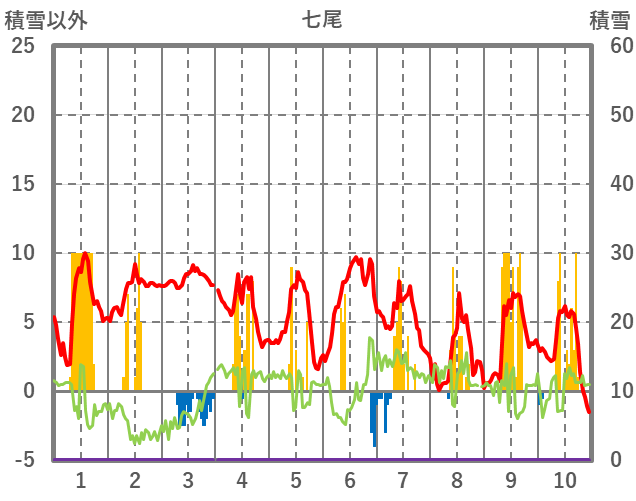 | 日 | 時 | 気温 | 降水 | 風向/風速 | 日照 | 積雪 | 降雪 |