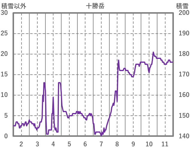 | 日 | 時 | 気温 | 降水 | 風向/風速 | 日照 | 積雪 | 降雪 |