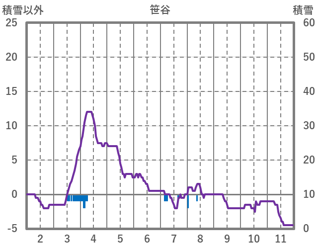 | 日 | 時 | 気温 | 降水 | 風向/風速 | 日照 | 積雪 | 降雪 |