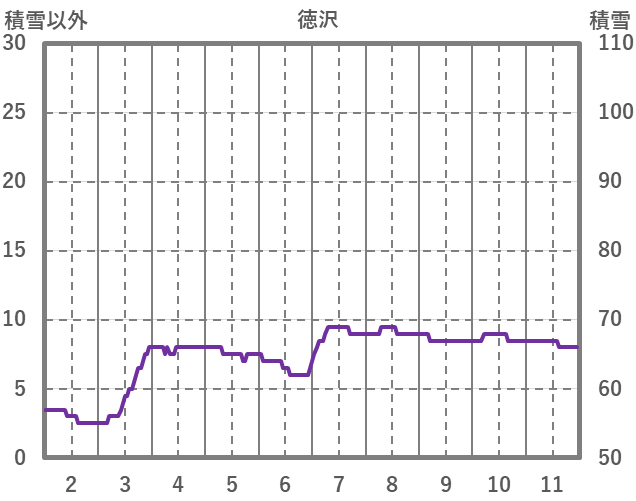 | 日 | 時 | 気温 | 降水 | 風向/風速 | 日照 | 積雪 | 降雪 |
