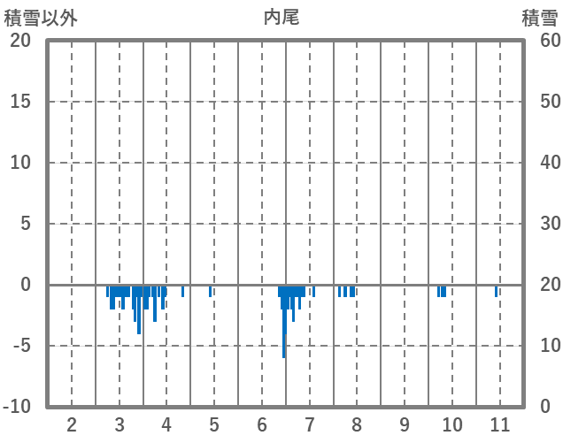 | 日 | 時 | 気温 | 降水 | 風向/風速 | 日照 | 積雪 | 降雪 |