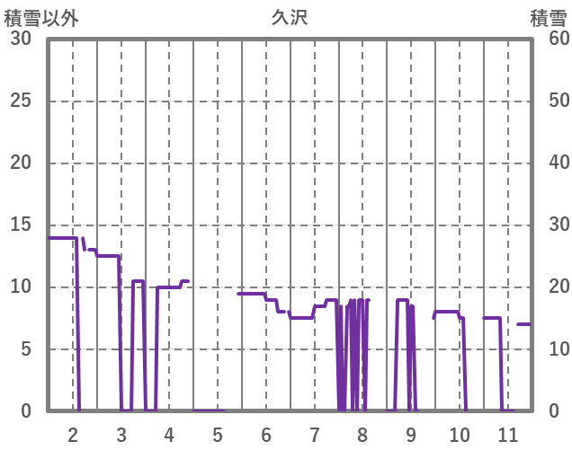 | 日 | 時 | 気温 | 降水 | 風向/風速 | 日照 | 積雪 | 降雪 |