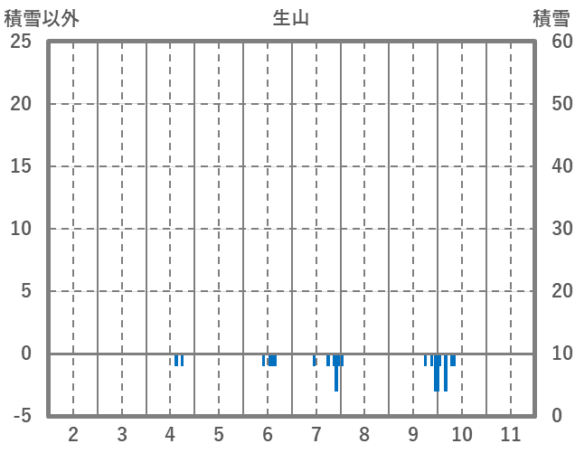 | 日 | 時 | 気温 | 降水 | 風向/風速 | 日照 | 積雪 | 降雪 |