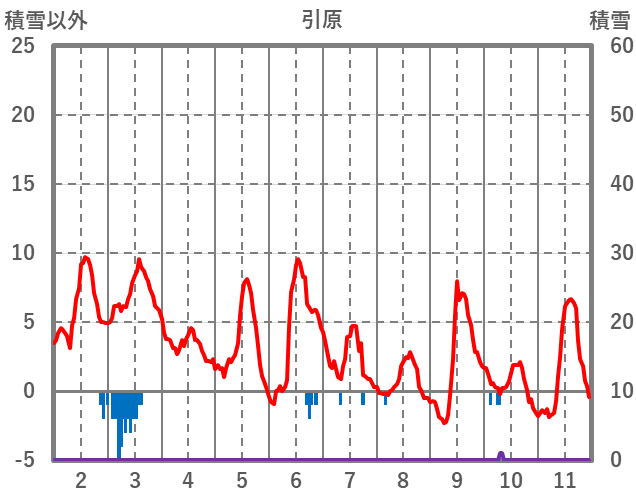 | 日 | 時 | 気温 | 降水 | 風向/風速 | 日照 | 積雪 | 降雪 |