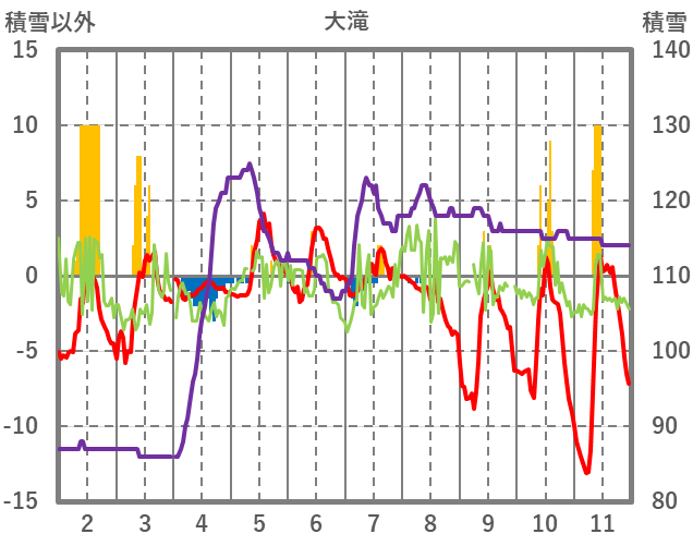 | 日 | 時 | 気温 | 降水 | 風向/風速 | 日照 | 積雪 | 降雪 |