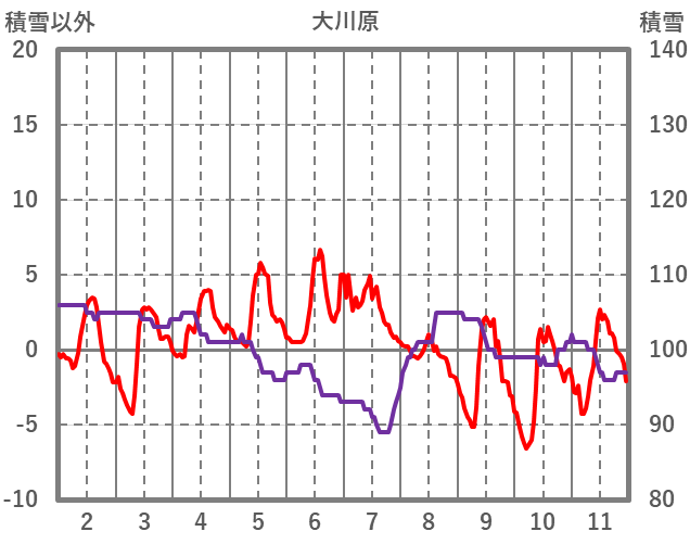 | 日 | 時 | 気温 | 降水 | 風向/風速 | 日照 | 積雪 | 降雪 |