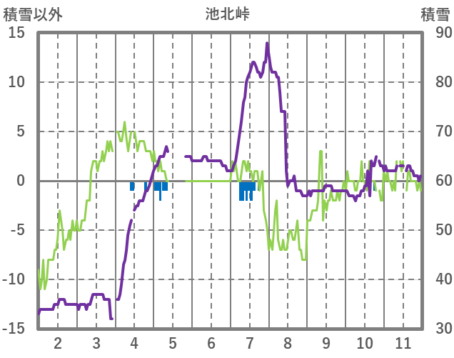 | 日 | 時 | 気温 | 降水 | 風向/風速 | 日照 | 積雪 | 降雪 |