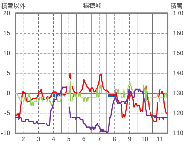 | 日 | 時 | 気温 | 降水 | 風向/風速 | 日照 | 積雪 | 降雪 |