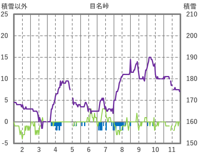 | 日 | 時 | 気温 | 降水 | 風向/風速 | 日照 | 積雪 | 降雪 |